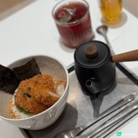 淡水朝日夫婦登陸香港啦! 人氣台灣淡水朝日夫婦登陸香港!主打日式刨冰,之前喺將軍澳開咗超短Pop up,而家再度同屋子聯乘,進駐K11 Musea 呢度午餐set lunch 極力推薦,抵食得黎又有質素 午餐今期有三款茶漬飯,我揀咗吉列豬扒茶漬飯$78,另加$48試咗迷你刨冰(指定口味),今日係藍莓乳酪口味 吉列豬扒茶漬飯: 吉列豬扒鬆脆,內質香滑,好好食,豬扒厚切扎實,入口鬆化。飯上層都鋪上紫菜同米脆粒粒,香脆好食。食咗一半之後,就進行第二種食法,將茶湯倒入,湯汁清香,入口暖笠笠。 藍莓乳酪迷你刨冰: 刨冰質地綿密,藍莓汁非常新鮮,入邊有乳酪,仲有新鮮藍莓,食落健康又唔漏,係總結一整個午餐嘅非常好嘅甜品,細細碗份量十足!閒日午餐時間冇咩人,唔使排隊,非常好 #人人生日快樂