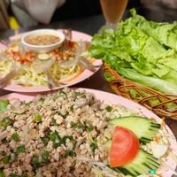 SOI.29 人氣排隊泰國菜,無訂座,而且只有晚上六點後營業,但仍然無減大家歡心。今次星期一落雨天晚上依然排長龍,好彩等半個鐘就可以入座。室內設計有種大排檔感覺,不過同友人都覺得似韓Feel多過泰Feel。 推薦: ▫️燒牛肉 $148 肉質嫩滑多汁,必點! ▪️炒金邊粉 $88 夠鑊氣! ▫️泰式奶茶|泰式綠奶茶 $38 還原度八成。 其他: ▪️飛天通菜 $78 惹味夠鑊氣! ▫️泰式生蝦 $138 生蝦爽口,醬汁蒜辣得過癮。 ▪️醉貓炒河 $88 炒到太碎欠鑊氣味道淡。 ▫️燒豬頸肉 $108 外皮不脆咬口韌而且調味重。 ▪️冬陰功湯(大) $128 酸辣度欠奉。 ▫️炸蝦餅 $88 一般。 ▪️生菜包 $88 一般。 ▫️椒鹽雞中翼 $88 一般。 ▪️肉碎粉絲沙律 $88 一般。 ▫️芒果糯米飯 $78 喜歡爛飯既可以一試。 ▪️龍眼冰 $42 超甜之選。 今次四個人叫左十二道菜,隔離枱都望到眼甘甘。經過幾位大胃王評審結論除了燒牛肉比較出色和有記憶點,大部分都比預期有落差。如果要再排隊,應該無第二次。 Soi.29 🍴尖沙咀寶勒巷29寶昌商業大廈地舖 💰 平均消費 𝗛𝗞𝗗 𝟯𝟱𝟬 💓 燒牛肉 泰式奶茶 ⭐️ 6 / 10 #UCreator#打卡美食#好去處#chill#打卡#倒數聖誕#我一定要飲咖啡#賞楓暢飲#快閃打卡賞#ok即刻有#泰國菜