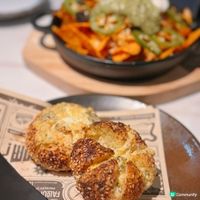 由生麵團開始自家製作,落單後即時焗製,外脆內軟,外層是惹味的蒜蓉牛肉麵包,中間還加入手工芝士醬,令人吃不停口。