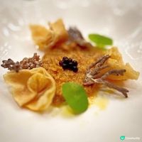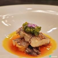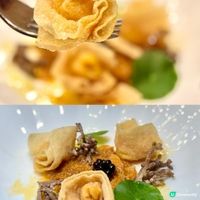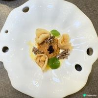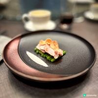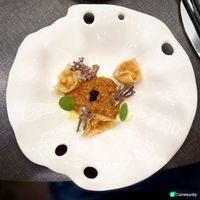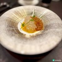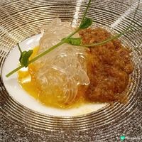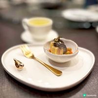 酥皮焗溏心鮑魚,將溏心鮑魚包裹在酥脆的外皮中焗烤,外焦內嫩,多重口感;珍寶珠這款甜點以珍寶珠形態的自家製作雪葩配搭桃膠,清新香甜。