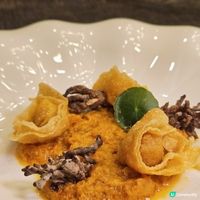 今晚我又陪老婆大人去食大閘蟹!聽講今晚佢要會一會猛男,作為一個貼身吖係貼心嘅老公梗係要陪住佢去啦。 呢一餐我哋去咗帝逸酒店嘅逸軒嘆大閘蟹,嚟呢度食記住要提前72個鐘預訂,唔係嚟到冇得食就唔關我事呀。 今日食嘅叫做金秋蟹宴,呢個餐總共有九味菜好多嘢食,我咁大食都要捧住個肚走。 淨係前菜都有三樣咁多!呢個係蟹粉蟹肉脆皮雲吞,脆卜卜嘅蟹肉雲吞點啲甘香嘅蟹粉食落口感好好,特別鍾意佢入面炸咗嘅龍爪菌真係好鬼爽口。 呢件好似太極咁樣嘅叫做天府口水汁鴛鴦雞卷!原來佢係用咗黃油雞同埋竹絲雞嚟兩溝,配個好香但唔算太辣嘅口水汁真係好鬼惹味。 跟住呢味燒椒醬輕煎去殼富貴蝦真係啱晒我呢啲懶人!因為師傅已經將瀨尿蝦嘅殼去晒,可以一啖擺入口食爽到不得了,呢個醬唔係妖辣嘅食落去麻麻嘅口感,加埋瀨尿蝦嘅鮮甜真係食得好過癮。 跟住呢碗湯就不得了喇!呢碗係椰皇濃湯燉花膠,佢有好濃郁嘅椰子香味仲越飲越香甜,入面有一件厚厚嘅花膠在場嘅女士飲得非常開心,大叔嘅我對呢件花膠亦都非常受落。 點解話今晚要砌猛男!咪就係因為呢隻大閘蟹公足足有成七両咁重囉。 呢隻大閘蟹膏都好夠金黃色嘅蟹膏食落去好甘香唔錯呀。 有老婆大人服侍將啲蟹腳拆晒肉俾我食,你話啲蟹肉又點會唔甜吖哈哈。 食完大閘蟹有呢碗沖繩黑糖薑茶暖胃,入面仲有一朵手工嘅豆腐花,連碗薑茶都靚到咁師傅想攞人命咩。 跟住呢個叫做蒜煎336小時熟成日本豬!熟成過嘅豬肉味食落去更加濃郁,配埋蒜片同蒜心一齊食口感十足好味道。 呢個咁晶瑩剔透嘅係蟹粉蟹肉燴冬粉!冬粉即係粉絲將啲蟹粉同蟹肉撈勻食爽口彈牙又鮮味。 最後仲有呢碗羽衣甘藍二少爺炒飯!炒得好乾爽嘅飯粒入面仲有帶子同豬油渣,鮮同香一齊襲擊我個口感覺真係好幸福㗎。 甜品有紫薯桂花冰粉同埋芝麻糕! 紫薯桂花冰粉個樣咁鬼靚老婆大人鍾意到不得了!食落去有爽滑嘅冰粉同埋香甜嘅紫薯粒,唔使加黑糖都已經好好味,另外芝麻糕食落去都好爽滑芝麻味夠香濃。