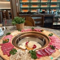 🌸「香江花月」懷舊風情火鍋店🌸 荃灣分店以製衣紡織為主題,店內放滿多部古董衣車、線轆等製衣工具的擺設,另外無論餐具、枱椅、調味架、燈飾都非常講究,另外寫上食物名稱嘅日曆牆尤其搶眼,可以撕落嚟點菜,真係極具心思及玩味。首先店員奉上每人一小杯凍凍地嘅蘋果綠茶,酸酸甜甜,好開胃。 🌸湯底:日本牛乳玫瑰🌹鍋($168) 呢個日本牛乳玫瑰鍋係女士嘅養顏之選,賣相好優雅,當滾起嘅時間,好似充滿白色泡沫的牛奶浴般,好治癒,仲散發出陣陣牛乳香,而木瓜亦很甜,好滋潤,係愛養生的美女們不能錯過的選擇。 🌸海陸雙饌 以優惠價$638(原價$1088)就食到啦😍好抵 ✅海鮮拼盤: 海鮮非常生猛,大蝦仲喺度郁吓郁吓,蜆同蟹肉令到個湯底更加鮮甜,鮑魚亦非常爽口彈牙,魚片厚切,啖啖肉👍 ✅特選黃牛呼拉圈 有黃牛的薄切牛舌、牛白肉、牛小腿、牛心椗及牛柏葉等,圍成一圈,好壯觀😍,我發現我愛上咗牛白肉,看似好肥膩,但其實只需淥五秒,入口一點油膩感都冇,仲非常爽口,好食👍 🥗皇帝菜($48) 每次打邊爐必選菜類。 🫖龍井茶($48) 龍井茶香撲鼻,喝下每一口都很舒服,而且解渴解膩。 #團圓時刻