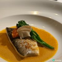 主食方面推介香煎海鱸魚($380)配搭魚子醬及蠶豆慕絲,賣相矜貴,口感鮮嫩。