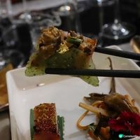 繼「宮‧養生篇」, 獅房菜最近推出【宮‧滋補篇】, 以秋冬時令滋補食材入饌, 當中有乾隆喜歡的乳鴿及燕窩. 【筵席】– 醋香刺參。鵝肝多士。松露金酥. 要有次序地吃, 先吃有海中人參之稱的刺參, 本身海參一類是沒有甚麼突出的味道, 因此醬汁是很重要, 秘製黑醋汁是菜式的靈魂, 再配炸得香脆的京蔥, 一軟一脆, 強烈對比. 鵝肝多士比較特別, 在麵包面塗上以豬肉鬆、雞蓉、雞脾菇及鵝肝醬等調製成的醬汁再炸. 和味~ 店員端來筵席時, 香氣撲鼻, 想必是松露金酥的功勞. 鬆脆外層包著黑毛豬、瑤柱、蝦米及黑松露醬等. Roland Champion Cuvee d’Aramis NV 配三小碟, 口感爽及鮮明, 帶優雅香氣, 酸度迷人, 作為餐前酒或伴襯前菜也好適合. 【金簪】- 這件看起來像炸鱈魚, 實際是蔬菜壓成薄層放在以豆漿、雞蛋及人參碎的蒸蛋上, 而這道菜更是滋補養顏, 因為有燕窩雪蛤, 拌在澄黃的蟹黃上湯之中, 口感順滑. 【皇湯】- 甘蔗雪梨麥冬燉桃膠. 我會形容皇湯是女生恩物, 因為湯燉足5小時, 清甜清潤, 是養陰潤燥, 美顏之選. 說真, 可以的話, 我想多喝一碗~ 【崑崙】- 筍殼魚, 皮脆肉嫩, 值得留意是配了黑舞茸, 再有惹味秘製蒜蓉醬汁, 配搭誘人. 以Clarence Hill Chardonnary 2020 (Naturally blessed vineyards) 配筍殼魚, 酒體不是太厚身也不是很薄的, 各方面都幾平均, 由於偏乾身, 酸度中等及帶微微橘子香, 所以可以配搭的菜式也多, 今次配海鮮, 也是很好~ 然後, 來一不紅棗薑茶, 薑度夠而不會過濃~ 【一品】- 南非鮑魚、柚子皮. 小爵盛著的是鵝油汁, 吃時把汁繞在鮑魚上, 鵝油配軟滑鮑魚, 好滋味! 而柚皮以魚湯及蝦米淆成, 即使不沾任何醬汁都夠味. 這支酒的label有吸引到我! 而且味道是我很喜歡的. The Prisoner Unshackled Chardonnay 酒體飽滿, 帶果仁及橡木香氣, 配美食之前喝一口, 讓酒香在口腔內游走, 吃一口鮑魚再喝, 味道的轉變同樣吸引! 【天香】- 藥膳。十香。醬油鴿. 最近我吃了很多鴿, 而這隻應該是數一數二的滿分. 醬汁以滷水汁及藥饍調製, 香味獨特, 正正是我喜歡的那股. 鴿肉嫩滑, 蘿蔔吸盡肉汁, 全部都配得好恰當. 珍酒53度酒精, 很強烈的高梁酒, 小麥香味也高, 配藥膳乳鴿, 碰出獨特的刺激, 好像把酒的甜度也拉高了. 【御賜】- 花膠。黑杞子。紫薯, 顏色多元配搭, 有黃耳、愉耳、小耳、紫薯、西蘭花、椰菜花、黑杞子及炒過雪菜等, 好鮮甜! 【上方】鵪鶉腿。臘味。豬油撈飯 . 十分邪惡但又超好味的一道菜. 鵪鶉腿皮夠香脆, 咬下充滿肉汁的腿, 再有臘味的加持, 令人好想再吃多一隻. 而豬油撈飯, 比想像中沒有那麼油, 挺好~ 三文魚色的Wild Olive Rose, McLaren Vale 2021顏色討好, 帶西瓜、香茅的清新, 鮮明酸度, 很有夏日清爽感也能解膩. 【國寶】抹茶。奶黃。流心餅, 這個甜品有內餡又有外表~ 暖暖的, 流心程度很好, 甜度也合心意~ Choya宇治茶梅酒是當晚最後一款酒, 因為要配抹茶流心餅, 梅酒帶薄薄的茶香, 甜甜的易入口. 很開心, 朋友為我和Sugar慶生~ 作為愛吃榴槤的我俩, 收到的蛋糕分別是D24千層酥 $380(3/4lbs) 及D197巴斯克芝士蛋糕 $380(3/4lb). 先說我的千層酥, 酥脆有度, 而且賣相好靚仔, 榴槤慕絲混了榴槤蓉, 唧出圓渾小球鋪滿每層, 很工整! 榴槤的濃郁度較高. 而巴斯克芝士蛋糕與千層酥是兩種截然不同的質感, 榴槤蓉與芝士香滑無比, 入口即溶般, 感覺是很奇妙, 同時榴槤的香味會縈繞在口腔, 好正~ 【宮‧滋補篇】有九道菜$638/位、十二道菜$1038/位(兩位起), 而餐酒配對$368/位. 由12月2日供應至2025年2月16日. 獅房菜 地址: 旺角太子道西193號帝京酒店3樓 歡迎與我聯絡: jannis_tang174@hotmail.com facebook fanpage: Jannis Tang Through the looking glass IG: jannistang #旺角帝京酒店 #宮 #lion rock #獅房菜 #榴槤蛋糕 #royal plaza #durian cake (此文章由U Blog 同步發佈至社群)