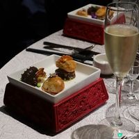 大廚從康熙60歲壽辰「千叟宴」中獲取靈感,以「海中人參」之稱的刺參,加入秘製黑醋醬汁,成就出擁有獨特滋味的醋香刺參;而以豬肉鬆、雞蓉、雞髀菇及鵝肝醬等作為秘製餡料的鵝肝多士,金黃香脆。而用黑毛豬、瑤柱、蝦米及黑松露醬等製作而成的松露金酥,甘腴豐香,讓人回味無窮。