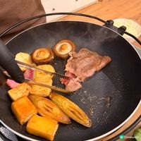 最近去咗沙田 🚇 一間超高質嘅壽喜燒 🍲 / 涮涮鍋/燒肉店「有田牛」,入面裝修簡約得嚟又帶點和風 🪑 雅致,木質傢俱同柔和燈光 💡 營造出一個好舒服 🌿 嘅用餐氛圍。 佢哋係日本 🇯🇵 宮崎農場,引入咗多次榮獲內閣總理大臣獎 🏆 嘅A5黑毛和牛「有田牛」🐮,所以餐廳都係叫呢個名。佢哋獨家將原隻A5和牛 ✈️ 直送到香港,省卻咗中間好多成本 💰,所以定價幾乎貼近日本當地 🎌 嘅售價,性價比真係幾高 👍! 今次我就揀咗😆「一人壽喜燒定食(120g西冷)」,個餐一上枱,🤩見到嗰碟西冷和牛嘅油花分佈真係幾靚 ✨。 呢度採取💪自助形式,我係個鍋度輕輕煎香 🥢 和牛,鎖住肉汁 💦,然後再倒入特製嘅關西風壽喜燒汁。當牛肉喺熱騰騰 🔥 嘅壽喜燒汁入面輕輕一涮,轉眼間就變咗誘人嘅粉紅色 🥰,夾起一塊沾上生蛋汁 🥚 再放入口,嗰種入口即溶 🤤 嘅感覺,牛脂嘅甘香同壽喜燒汁嘅甜味完美結合 💫,真係令人好滿足 😌! 定食仲配有新鮮蔬菜 🥬 同埋香噴噴嘅白飯 🍚。食完和牛,再將蔬菜放入壽喜燒汁度煮 🔥,吸晒和牛嘅精華 😍 同壽喜燒汁嘅甜味,清甜又解膩 🌿。 有田牛 地址:沙田沙田正街18號新城市廣場一期1樓128舖 #有田牛#宮崎牛#A5和牛#壽喜燒#關西風壽喜燒#一人壽喜燒#和牛西冷#高CP值#香港美食#沙田美食#和牛專門店#極致風味#內閣總理大臣獎#和牛御膳#燒肉套餐#和牛控#日式料理#打卡美食#wagyu#sukiyaki