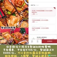 價錢:平安夜主題自助晚餐成人¥398/位;聖誕節主題自助晚餐成人¥298/位