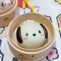 餐廳內外都係PC 狗ヽ( ★ω★)ノ卡娃伊呢~ 🍜《 特製黑松露忌廉烏冬 💲138 》 厚厚嘅黑松露忌廉上用日本魚蛋同竹炭麵包砌咗PC狗個樣🐶下底就係烏冬(🤔覺得都係拉麵嚟)。微甜唔太膩,口感滑溜~ 仲有炸雞、玉子、蟹柳同兩顆印上小肉掌嘅鵪鶉蛋🐾🐾🥚 🍜《 特製牛奶拉麵 💲98 》 有流心蛋、豬軟骨同兩片叉燒,都軟腍~ 麵條係太麵,口感彈牙,湯底仲有粟米粒~ 🦐《 特製蝦餃 💲38 》 蝦餃皮印有PC狗,好可愛🥰一口一粒~餃皮煙韌。蝦肉鮮甜彈牙~ 🥠《 特製黑芝麻蒸包 💲28 》 PC狗🐶蒸包要襯熱食會軟熟好多,中間梗係黑芝麻餡啦!唔會好甜~ 🍧《 特製北海道牛奶芭菲 💲58 》 有北海道牛奶雪糕、哈密瓜肉、蜜瓜肉、丸子、桃肉、餅乾、🥕造型軟糖,大人細路都會中意! 🍹《 特製啫喱青蘋果梳打 💲38 》 🍹《 特製椰果可爾必思梳打 💲38 》 兩杯都有PC狗綿花糖浮面,好cute 唔捨得佢溶😆梳打中有椰果同啫喱,好味又有口感~ 🈹🈹🈹🈹🈹🈹🈹 ▫️買限量版拉麵碗送特製蝦餃+2杯特飲+巴菲! ▫️買齊一套精品仲送Pochacco精美木製碟! *數量有限,送完即止!* 快啲去啦💨 📍富山麵家 銅鑼灣希雲街7號地下 #日本菜#拉麵#sanrio同你拜年#打卡美食#ucreatorhk#foodie#foodiehk#生活足跡#打卡