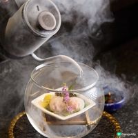 時令刺身共6款,當中包括口感creamy的鱈魚白子、魚子醬鮟鱇魚肝、煙燻火炙鰹魚、北寄貝、赤貝及甘蝦。甘蝦刺身伴魚子醬、紫蘇花及蝦油,食落蝦味香濃!