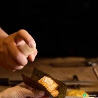 煙燻火炙鰹魚由師傅即場火炙,再燃點起櫻花木,讓鰹魚被燻上一種香氣,鰹魚自身的油香再塗上海苔醬及食用金箔,味道層次豐富,打卡一流!