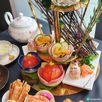 下午茶鹹點方面,有拿坡里炸薄餅球伴海膽、龍蝦夾心包、雪蟹牛油果撻、雞蛋配魚子醬三文治。