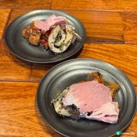 以日本神社作設計靈感的串燒店,讓人有如置身於幽靜的神宮一般的舒懷。餐廳主打特色創意串燒,揉合島國火料理精髓於一體,擅長烹煮造詣和精心製成的醬料,令食材味道昇華。人氣必吃的牛肉菜式不限於串燒,其他烹調方式亦同樣精彩!三味席前薄燒和牛壽司選用鹿兒島 A5 和牛西冷部位,於席前輕燒,配上堅果牛肉汁、松露牛肉汁以及柚子汁3款特配醬汁,味道別具層次。A5 和牛扒薄切片上,熟成度剛好,加上炸蒜粒,更可帶出油脂香氣。除了牛肉外,厚切牛舌芯同樣不可錯過,一口咬下滿滿的肉汁滲出,每一口都充滿濃郁的肉香。