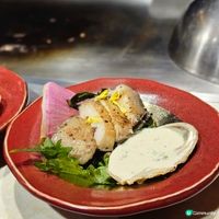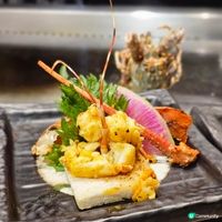 鐵板燒料理嚴選日本新鮮直送海鮮及高級食材,搭配主廚特別調製的沾醬。其中日本伊勢龍蝦配特調美式醬汁是必試之選;而鐵板燒和牛嚴選日本宮崎和牛,肉質軟嫩多汁,搭配鐵板炒過的脆蒜片,更添風味。此外來自北海道函館的帆立貝,外層微焦,入口鮮甜,配以「田園中的魚子醬」美譽的Tonburi (とんぶり) 點綴,口感豐富。