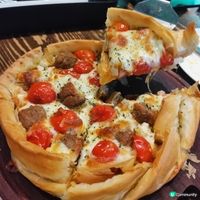 天氣已經夠晒熱辣辣🥵,同亞仔走進一個還沒有地鐵既舊區覓食,堅持行成十幾廿分鐘,終於到達新蒲崗了。 在這個混沌時代,居然有四個後生仔以窩;家為主軸,開設了一間集咖啡,熟食,甜品的《窩子 Wozi Cafe》, 佢地嘗試將西式甜品食材,混合主菜,創作出與別不同的料理。 我們今天便來試試這個「慢煮手撕豬腩窩夫三文治」吧!😉 一睇就知主菜原型是巨型漢堡包,麵包換上窩夫,份量都好重型下喎!🙈 另一件窩夫都未放上,口肯定是不夠大了🤣,內裡一絲絲既豬腩肉絲,居然一點都不鞋口,還滿juicy👍🏻 Pizza平時真係食得多,酥皮底你又試過未呢?「意式蕃茄肉丸芝士酥皮薄餅」🍕,酥皮這咚咚真的是令人難以抗拒🥰 最後緊係要食埋衣度最潮的甜品美食啦!😋 「法式千層酥焦糖香蕉配雲呢拿雪糕」千層酥夾著吉士醬,層次分明酥脆掉渣,再沾上雲呢拿雪糕,份外美味😍 「三重朱古力麻薯窩夫配朱古力蛋糕 」是這裡的必點招牌, 超邪惡重量級香濃朱古力,澎湃的朱古力醬,朱古力顆粒,朱古力蛋卷佈滿在剛出爐的麻薯窩夫上,伴著冰冷的朱古力雪糕,帶來一冷一熱的雙重感官體驗。 #蛋糕 #窩夫 #Dessert