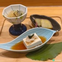 前菜方面,有「先付三品」,包括清酒煮象拔蚌仔配昆布汁泡沫、巿田柿芝士及松葉蟹肉黑松露忌廉多士。
