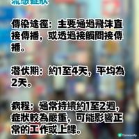台灣藝人大S流感併發肺炎驟逝。近期日本流感疫情嚴重,日本流感疫情情況再度令人擔憂。流感到底是什麼呢?流感和感冒之間有哪些區別呢? 🇯🇵早前日本新聞指香港人常去的東京、大阪和福岡等熱門旅遊地點,流感疫情達「警報」級別。東京更是六年來首次發布相關警報⚠️。 最近上網都見到部分港人遊日途中或返港後也出現流感症狀。大家最近去日本真係要留意身體狀況。🙏🏻即刻去圖了解如何分辨流感/感冒症狀?助你及時求醫!👉🏻👉🏻 以上內容僅供參考,如果出現嚴重不適,應及時就醫!最近大家,要小心身體啊! 資料來源:厚生勞動省、衞生署 圖片來源:Canva #健康生活#身心靈健康#保健貼士#感冒#流感#日本旅行#日本#攻略