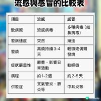 流行性感冒(流感)和感冒同為呼吸道疾病,兩者症狀十分相似,但有些地方卻有着明顯分別: