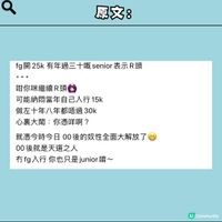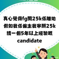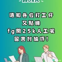 最近喺Threads見到有網民討論關於fg(fresh graduate應屆畢業生)人工,話fg薪金開25k,senior睇到r晒頭?🤔 樓主回應都好搞等,又引來勁多網友都超大反應+一齊討論🥜即刻去圖睇吓👉🏻 唔知各位打工仔又點睇fg開25k人工呢⁉️ 留言討論吓😮💨 來源:Threads 用户 @winning.xxw #UCreatorHK#MOMENTSwithUCreator#求職#揾工#見工技巧#職場生活#職場人際關係#Freshgrad#攻略
