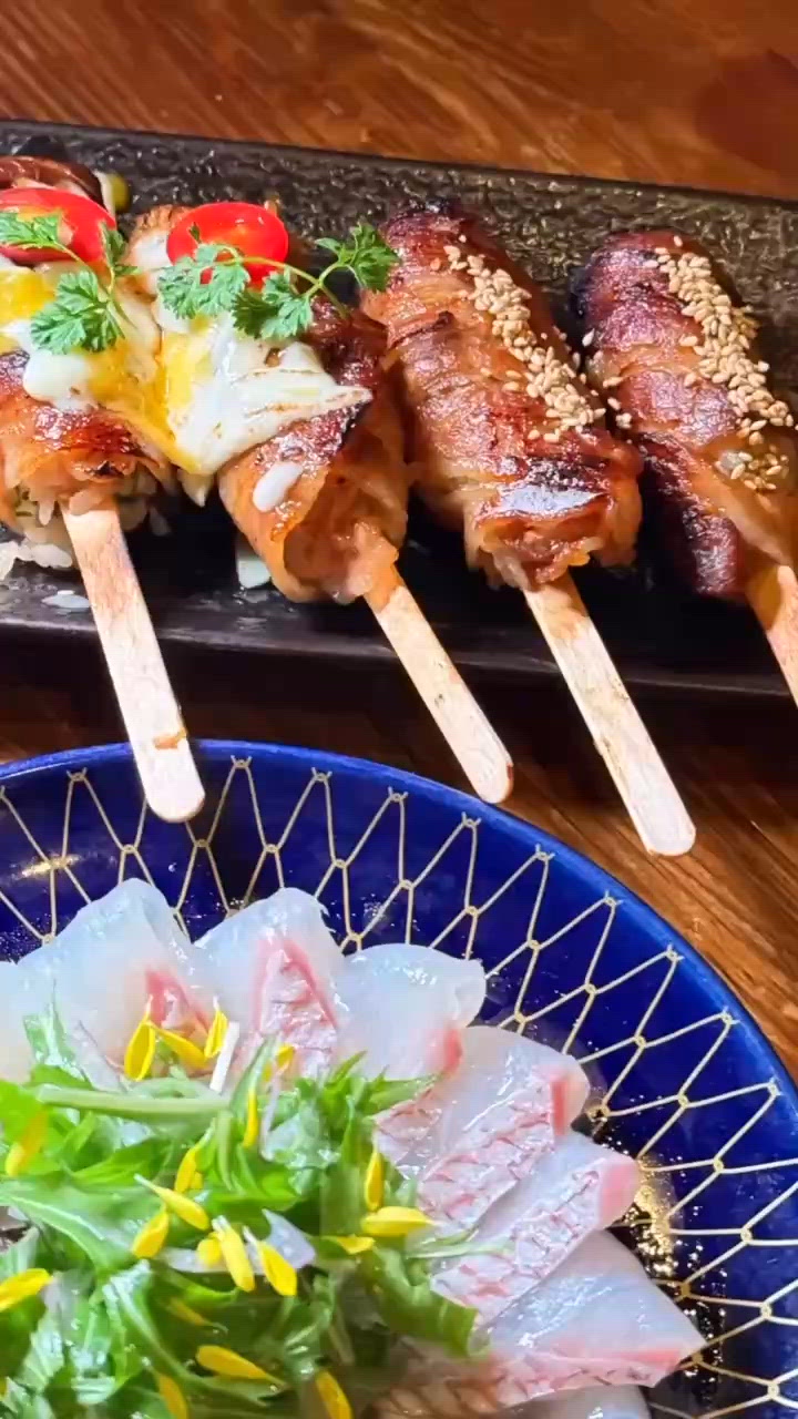 【主打以明爐炭火炮製的博多串燒】
