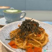 推薦明太子海膽汁蟹肉意粉($148),意粉上鋪有蟹肉和紫菜,每條麵都掛滿醬汁,而且每啖都吃到明太子在口中爆發的滋味。