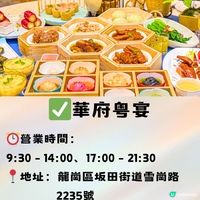 華府粵宴位於坂田華為,是一家價廉物美的飲茶好去處。餐廳供應多款點心,而且賣相精緻,光看外表已讓人食慾大增。華府粵宴更首創蝦餃拼盤,一次可以吃到不同口味的蝦餃,另外抹茶馬蹄糕亦是華府粵宴的自創點心,抹茶與馬蹄完美融合,口感清香。