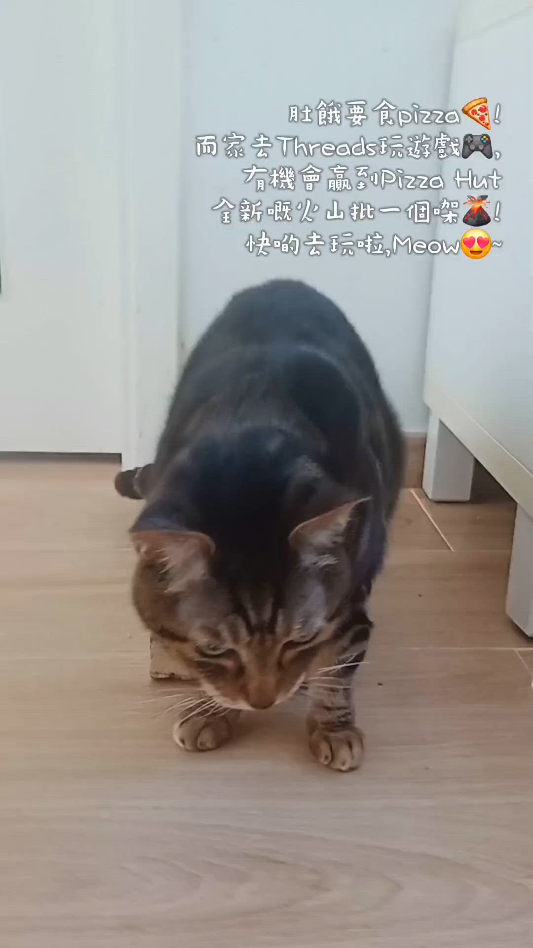 肚餓要食pizza🍕! 而家去Threads玩遊戲🎮, 有機會贏到Pizza Hut全新嘅火山批一個㗎🌋! 快啲去玩啦,Meow😍~