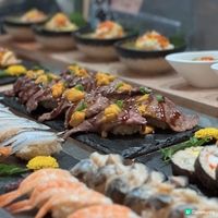 👉🏻 自助晚餐任食波士頓龍蝦、A3和牛中拖羅箱押壽司、A4和牛柳薄燒 配吞拿魚開心果沙律汁、慢燒澳洲安格斯和牛肉眼、即切北京片皮鴨!