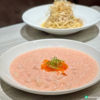 主食方面,餐廳提供多款意粉選擇,包括招牌辣番茄忌廉大蝦意粉、明太子忌廉蝦肉三文魚子飛魚子紫蘇意粉、蔥蒜香蟹肉意粉及和風火炙帆立貝意粉等。