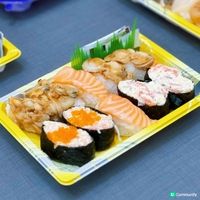一共4款「超驚喜の價格」壽司盛,價錢由$24至$40不等。「蟹他他軍艦貝之盛」一盒10件,以濃郁蟹他他軍艦,搭配帆立貝、蜆肉及三文魚壽司;「燒三文魚腩飛魚籽」一盒6件,包括香烤三文魚腩壽司及飛魚籽赤蝦軍艦;「海膽蝦紅雪蟹他他盛」一盒6件,包括海膽蝦壽司及紅雪蟹他他軍艦;「象拔蚌豪華貝盛」一盒10件,以鮮嫩象拔蚌搭配鮮甜貝類!