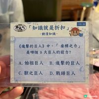 牛大人 新出既遊戲 - 知識就是折扣 通過答題贏取餐飲折扣等優惠,所有客人都可參加,答題中不可使用電話、書本等。獎品如下: * 答中2題:即影即有一張 * 答中4題:即送鮑魚小吃拼盤共6隻 (3款特色鮑魚各2隻) * 答中5題:下次惠顧吃到飽套餐全單八五折 (需登記成為Storellet會員) ❣️我答中左3題,有即影即有,有得玩有得拎 ,開心 🥳