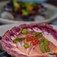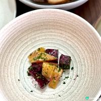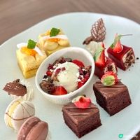 菜單薈萃逾十款精緻前菜 (包括酸種麵包配紫菜牛油、淺漬油甘魚、淺漬帶子、和牛他他、烤一夜干魷魚、炸粟米餅、布拉塔芝士伴季節布冧、西蘭花苗、漬紅菜頭沙律、迷你羅馬生菜沙律、烤豬腩肉等)、主菜選擇 (烤三文魚、西班牙伊比利亞黑毛豬、三黃雞肉卷、澳洲羊架、墨汁燴飯、M7 和牛後腰脊肉 (另加港幣 120 元)、烤波士頓龍蝦 (另加港幣 220 元) 等,最後當然有甜點拼盤。
