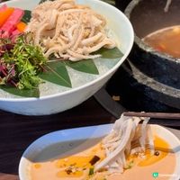 招牌野生菌石鍋土雞湯底($129),以多款精選野菌配上300天土雞,使用石鍋作為火鍋器皿,每日精心熬煮3小時,品嚐野生菇菌及土雞的天然鮮味,可額外加點山林土雞片食用($98)。除了養生野菌火鍋之外,餐廳亦有提供火腿野生菌炒飯($66)、紅燒乳鴿($78)及滷水小食等等。
