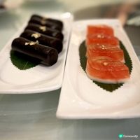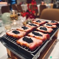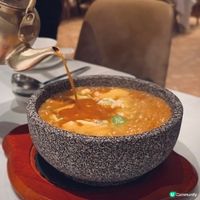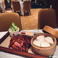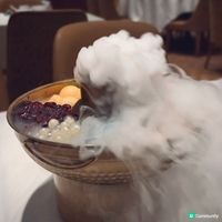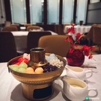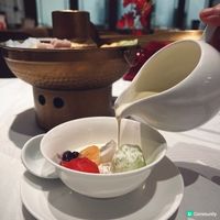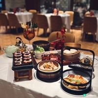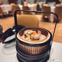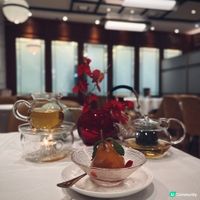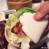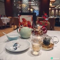 下星期就到母親節,又是時候與家人聚首吃大餐,答謝媽媽平日的辛勞👩🏻🍼,荃灣荃新天地有不少中菜廳,主打粵菜的八月花,融合傳統與創新元素,菜式種類繁多,老少皆宜 ,賣相精巧別緻,為母親節時光增添儀式感與溫度💓,餐廳面積廣闊,環境開揚寬敞,高樓底甚有空間感,一洗中菜館的俗套老氣,注入時尚氣息,散發摩登的東方韻味🪭。 雀籠點心 $198 點心拼盤造型優雅,上下分為蒸焗兩層,有齊六款點心:蟹肉松露燒賣、藤椒酸菜魚餃🥟、娥姐素粉果、蜜汁叉燒酥、一口鮑魚撻和琥珀合桃酥,松露燒賣以絲絲蟹肉點綴,藤椒酸菜魚餃味道麻辣而不嗆喉🌶️,素粉果以素代肉,內餡清脆爽口,酥脆撻皮放上緊緻彈牙的鮑魚,叉燒酥金黃鬆化,琥珀合桃酥香甜又脆口。 炙燒松露黑豚肉 $198 上菜時有專人點火燃燒,剎那間閃出火光❤️🔥,黑豚肉燒得色澤鮮亮,帶有焦香燶邊,油花較重,脂香滿瀉,口感比傳統叉燒更細緻鬆軟,馥郁的松露香可以中和肉食的肥膩感🍄🟫。 慢烤脆香茶燻鴨一隻 $396 鴨皮呈現誘人深琥珀色,閃亮發光,鴨肉經過長時間低溫慢烤🦆,肉質鮮嫩多汁,以茶葉燻製後,賦予沉實的煙燻香氣,另加$20可加配4件包身軟綿的荷葉餅,包著味濃肉嫩的鴨肉、生菜、酸薑🫚、酸辣醬和甜醬等配料,一口咬下唇齒留香。 龍蝦湯泡飯 $168 石鍋溫度夠熱,蒸氣騰騰,從頭吃到底都可保持熱燙溫度,龍蝦湯色澤紅潤油亮🦞,味道濃郁鮮甜,加上新鮮爽彈的蝦肉入饌,每粒米飯盡吸鮮味精華。 芋圓仙草撈冰鍋 $68 上桌時放上乾冰,飄逸著仙氣般的煙霧,猶如一場極致的感官饗宴,集齊多款色彩繽紛的配料,包括西瓜、哈蜜瓜、蜜瓜🍈、紅豆、芋圓、仙草、爆珠和椰果,一鍋份量超驚人,足夠3-4人一起分享,緩緩倒下濃稠滑順的煉奶🥛,口感更富層次感。 清甜雪梨凍 $36 梨形果凍晶瑩剔透🍐,口感Q嫩彈滑,沁人心脾,留下天然清甜的餘韻。 花果奇緣 $78 巨型重量級水果茶以茉莉花茶底混合西瓜、蘋果、青蘋果、熱情果、青桔、西柚、士多啤梨🍓、藍莓、金柚、香橙和薄荷,極之足料,綻放酸甜清新果香。 南岩鐵觀音 $48 茶湯清瑩透澈,茶香清幽回甘,有助消滯解膩🫖。 #中菜餐廳#UCreator#打卡美食#美食推介#香港美食#新界美食#泡泡潔淨#八月花#荃灣
