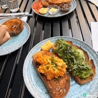 鰂魚涌新分店延續了其他分店的工業簡約風格,室內裝潢融合了混凝土牆面和黑色金屬元素,營造出現代而質樸的感覺。戶外座位區被綠意環繞,無論是與朋友聚會,還是獨自享受一杯咖啡,都能讓人放鬆身心。牆上的藝術作品為整個空間增添了文化氣息,展現了獨特的藝術品味。