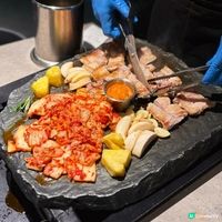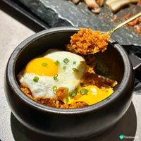 近排韓燒界大熱,一定係濟州岩洞主題嘅「The Jeju」 🌟一踏入餐廳,就好似瞬間傳送到濟州火山岩洞🌋牆身以深灰凹凸石材堆砌,燈光陰影做得好靚,連烤盤都係定製火山石,氛圍感爆燈💡 🔥The Jeju Set Menu - Set B 💰$376 🍴罈子五花肉 必食推介‼️經168小時低溫熟成黑毛豬,色澤粉嫩,肥瘦相叠層層分明💕放上火山石板燒嗰刻,脂肪慢慢融化,嘶嘶聲超治癒🤤入口油香四散、肉質嫩得嚟唔膩,再配泡菜、杏鮑菇、蒜片,味道層次即刻跳升🆙 🍴石板炒飯 炒飯帶泡菜微辛感,就咁配五花肉食已經好好味😋額外加$20配芝士及煎蛋,融化芝士+半熟太陽蛋撈埋炒飯更添滋味😍 炒飯帶泡菜微微辛香,好惹味🌶️建議加$20 要埋芝士+太陽蛋🧀半熟蛋黃撈開,芝士慢慢溶入炒飯,濃香黏口,好食到停唔到口😆 🍴前菜拼盤 跟餐附送六款前菜拼盤,包括洋蔥漬、蘿蔔漬、醃漬魷魚、濟州鳳尾魚醬、麻油鹽及沙律💕鍾意濃味的話可以蘸濟州鳳尾魚醬,突出鹹鮮味😛 🍴韓牛他他 💰$238 韓牛他他面頭鋪上大量芝士粉+蛋黃,賣相好吸引😍拌勻後食落口感超滑,牛味香濃,芝士鹹香同蛋黃令味道更圓潤☺️ 🍴Jeju Yeah Yeah 💰$70 濟洲老爺爺石像造型,黑芝麻布丁+柑橘果餡,配雲呢拿雪糕🍨造型超得意😍布丁芝麻味香濃,柑橘果餡酸甜清新,做到真正嘅濟州風味🍊 🍹芒果奇異果沙冰 💰$48 果肉感好足,冰沙綿滑😋芒果甜味同奇異果微酸平衡得剛剛好😙 🍹金桔百香果梳打 💰$48 入口酸甜清爽,百香果粒粒香氣好突出,燒肉後飲一杯即刻清一清味☺️ ————————— 📍The JEJU (旺角) 旺角亞皆老街8號朗豪坊11樓13號舖 ————————— #社群生日快樂#甜蜜聖誕滋味#我想食lifetastic聖誕蛋糕#ucreator#打卡美食#thejeju