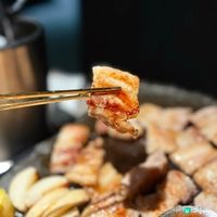「THE JEJU」嚴選濟州島直送黑毛豬,提供五花肉、豬肩肉、豬頸肉、豬皮等部位,更用上濟州島傳統特製的熟成方法,在罈子中經過168小時低溫熟成,其五花肉口感鮮嫩可口,烤後外脆內軟!單點最平$118,二人燒肉套餐最平$338。現場有工作人員幫手燒肉,十分貼心!