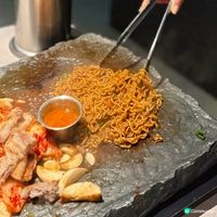 今次嚟到旺角呢間新開的韓式燒肉店 @the_jeju_hk 🤩🤩 餐廳主打低溫熟成黑毛豬同空運濟州直送食材,店內裝潢以濟州玄武岩為主題,更引進韓國定製火山石烤盤!鍾意食韓國菜的我當然要嚟試試🔥🔥 - 🐷罈子五花肉450g+炸醬炒麵 $376✨ 店員會幫手將五花肉、泡菜、蒜頭、菠蘿、菇等放喺石板上燒,完全唔洗自己郁手~~ 五花肉採用濟州島傳統方法在罈子中經168小時低溫熟成,口感特別鮮嫩軟腍!經燒烤後外脆內嫩,啖啖油脂香🤤🤤 套餐包前菜、炒飯/炸醬拉麵,我地揀咗炸醬拉麵~麵條爽彈入味,吸收哂濃郁肉香!! - 🥚韓式芝士蒸蛋 $68✨ 上枱時外型脹卜卜好吸引!蒸蛋口感滑嫩、重蛋香,配上滿滿的拉絲芝士,十分邪惡😋😋 - 🥣芝士大醬湯飯 $58✨ 用韓國大醬、豆腐、蔬菜、豬肉、米飯等煮成,湯頭濃郁鮮甜,加上芝士味道更豐富!! - 飲品方面,我地揀咗漢拿峰梳打($48)🍹同士多啤梨米酒($48)🍓~~ 漢拿峰梳打酸甜開胃,氣泡感十足!士多啤梨米酒味道清甜帶點酒香,比較易入口👍🏻👍🏻 - 🏠 The JEJU 地址: 旺角亞皆老街8號朗豪坊11樓13號舖 #童您放暑假#chill玩夏水禮#我想變身蚊界透明人#夏日一點甜#chill賞同陽光玩遊戲#chill嘆旅行#chill賞放大假#ucreator