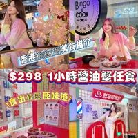 任食醬油蟹|醬油蟹放題|醬油蟹愛好者注意啦!銅鑼灣韓國餐廳Bingo & Cook為慶祝開業10週年,特別推出了任食醬油蟹放題優惠,最平$298起便可無限享用醬油蟹。客人可自由選擇任食蟹公或任食蟹乸,全部採用韓國直送新鮮藍蟹,蟹膏份量十足,鮮味濃郁。任食醬油蟹套餐還可以無限任食韓式辣湯年糕烏冬、原味炸雞、年糕香腸串、紫菜白飯及任飲罐裝飲品。另外亦可以優惠價加配醬油鮑魚或醬油蝦;加$45更可任揀3支韓國啤酒或燒酒。餐廳還有提供人氣50cm巨型韓式海鮮鍋,海鮮控不能錯過呀~