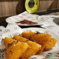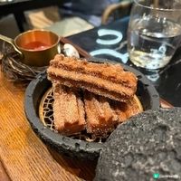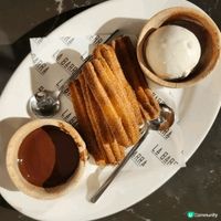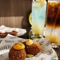 La Barra Tapas Spanish Restaurant💃🏻 長沙灣隱世西班牙風味小館,裝修帶有西班牙小區的民族氣息💃🏻,晚餐時段幾乎任何時候都爆滿! 今次揀咗lunch過黎,都接近9成滿🙊 ,深受食客歡迎,這裡的氛圍讓人感受到濃厚的西班牙風情,絕對是聚會和約會的理想場所! 🌀 西班牙海鮮飯 !!! 餐廳必點! 慢工出細貨,製作時間大約30分鐘🙈 海鮮飯濕潤有鮮味,米粒索滿海鮮湯精華,有好香既扇貝蝦味。米粒粒分明表面,仲有三大隻紅蝦同其他海鮮🦑🦐🦪,好足料 🌀 純種黑毛豬火腿48個月 黑毛豬以橡果餵食🌰 食落明顯帶有一股芳香🙋🏻♀️黑毛豬火腿片風乾時間長,色澤深紅油花細緻。 🌀 傳統蕃茄多士 + 炸曼切戈芝士 多士採用法包製作,香脆法包表面塗上新鮮蕃茄蓉好清新! 表面用上少許海鹽同橄欖油調味✔️ 將西班牙羊奶芝士切成三角形片,沾上麵包糠後油炸,真係酥脆到不得了😚 淋上蜜糖🍯鹹甜交錯,很不錯呢 🌀 松露蘑菇可樂餅 + 蟹肉可樂餅 $20/piece! tapas最好就係細細份,可以試多幾款🙋🏻♀️ 松露蘑菇可樂餅蘑菇香大爆發,仲食到少少蘑菇肉😻 蟹肉可樂餅唔算creamy,但幾有鮮味👾 🌀 Churros with Vanilla Ice-cream 暫時算係我食過最好食的Churros Top 3! 原本已經好飽都忍唔住食多兩條🙊 即叫即炸外酥內軟,灑上滿滿肉桂粉的溫暖churros 單吃也好吃! 熱熔朱古力醬帶點酒香🍷 🌀 AQUA + PEACH ESPRESSO TONIC 兩杯mocktail都好靚~ 顏值高又清新,透心涼嘅感受 #中秋Q彈時刻