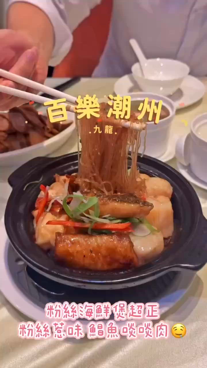 🇭🇰百樂潮州酒家 · 胡椒粉絲焗海鮮煲$498 l 手打魚蛋津菜煲$168 l 滷水骨香鵝肉拼盆$228 我見OpenRice都幾多人推介佢個海鮮粉絲煲 果然真係幾正😍佢個粉絲係索曬所有海鮮味 超級惹味🤤🤤之後佢入邊仲有4大舊鯧魚 啖啖肉 而且煎到好香🐟帶子都超大粒 不過呢個就稍為煮老咗少少 仲有大蝦🦐之後佢個魚蛋超級彈牙 點辣椒油一流🌶️另外個鵝肉拼盤份量都好多 有超多鵝肉 墨魚同埋豆腐🦢 · 胡椒鹹菜豬肚湯$80 l 招牌杏汁燉白肺湯$98 佢兩款燉湯我地都好鍾意😻佢個杏汁白肺湯係真係超重杏仁 好似食緊杏仁露咁 如果鍾意杏汁嘅一定鍾意😌另外個鹹菜豬肚入邊嘅豬肚都好爽口 好乾淨 而且胡椒味好濃 好暖胃🥰🥰 · #rbyeat #rby中菜 #rby九龍 · 📍尖沙咀柯士甸道西1號ELEMENTS圓方水區1樓1028D號舖 #中菜餐廳#UCreator#打卡美食#美食推介#香港美食#九龍美食#港島美食#新界美食#旅行美食#夏日購物賞#韓式髮型神器