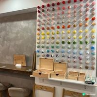 這間店鋪以日式風格為主,裝修設計簡潔雅緻,營造出放鬆的氛圍。店內牆壁上懸掛著店主親手製作的精美和菓子,好適合打卡。