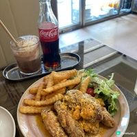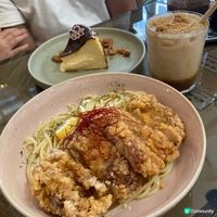 . 今日撞正要去油麻地辦事,甘岩搵到個好地方醫肚,雖然餐廳的門面比較「舊」而不起眼,但再細看才知道餐廳內有乾坤,其實係上一手舊有的茶餐廳業主要移民,好彩店舖最後得到一班年青人承繼後再沿用店名去經營,但就將內部格局由茶餐廳轉變成為當下潮流的西式Cafe。 🔸西檸雞牛油檸檬汁意粉($84) 將牛油加入意粉水乳化,過程中就算無落忌廉都可以令質地好似忌廉一樣咁Creamy,而且意粉充滿住牛油香,再加上檸檬汁甜甜酸酸,彈牙口感又夠fresh。西檸雞肉質嫩嫩不嚡口,同樣帶點酸酸的味道,整體係一道適合夏日的fusion菜。 🔸臘腸冬菇奶油意大利飯 ($92) 中式煲仔飯就食得多,但今次竟然內裡係裝住既係臘腸冬菇奶油意大利飯。充滿奶油的creamy柔滑的味道,但意大利飯有D被瓦煲焗得偏淋,米粒中未有帶點煙韌的嚼口,口感卻不失不失。雖然加上臘腸帶有點點油香,但整體偏淡口,個人始終偏向喜愛煲仔飯有種甜豉油咸香和焦香的口感。若然煲仔飯能加多點中式的特色會更好。 🔸脆炸鹹蛋黃雞翼配薯條沙律($68) 雖然寫明係輕食,但份量一啲都唔輕,肥美大隻的炸雞翼,炸得恰到好處,表面沾滿咸香脆口的鹹蛋黃,再配埋炸薯條,新鮮熱辣辣甘炸起、邪惡滿分。 🔸薑汁撞奶麻糬蛋撻($28) 用了香港品牌的十字牌牛奶調製而成,非常有香港特色。雖然薑汁的味道較淡而不辣,反而牛奶的奶味相對較突出,小朋友都會鍾意。重點係麻糬做得非常厚身,口感煙煙韌韌,同脆口的曲奇蛋撻底非常配合。 🔸凍兒童鴛鴦 ($46) 用阿華田同好立克沖泡而成的兒童鴛鴦,兩款口味都咁好味,又冇咖啡因成份,表面再灑上阿華田粉和燕麥碎大大增加口感。 🔸啡立刻(凍$50) 雖然習慣飲開齋啡的我,好驚咖啡味唔夠強,好彩詢問一下員工,原來咖啡係用Double shot,雖然第一下飲落去,好立克味會比較強,但之後咖啡的甘香就慢慢滲出黎。 🔸黑牛($48) 黑牛係八十年代初香港特色飲品。雖然唔係我出生嘅年代,但係起我細細個都仲記得有可樂玻璃樽飲。今次難得有得再點返,仲要係經典版的玻璃樽可樂,再加埋一球冰凍的維記雲呢拿味雪糕同Sparkling朱古力脆脆,童年回憶就返晒嚟。 🔸杏霜巴斯克焦烤芝士蛋糕($46) 蛋糕做得好厚身,中間的軟心做得超出色,creamy柔滑,杏霜的味道真係超突出,一下子就籠罩住整個味蕾。愛杏霜的人一定要試。不過個人唔太受得杏霜的味道,反而加埋碟旁的碎曲奇,味道平衡返又接受到喎。 . 📍大安茶冰廳 🏡油麻地廣東道830號地舖 . #親子#香港媽媽#香港bb#親子#親子活動#親子kol#親子日常#育兒日常#餐廳#親子餐廳#親子推介#香港好去虑#香港茶餐廳#UCreatorHK#chill賞同陽光玩遊戲#享受天然芳療時光