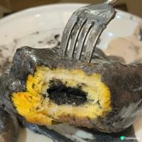 📍大安茶冰廳 位於油麻地,主打各種特色口味的盤撻/西多士/菠蘿包,也有不少中西融合的特色麵飯等主食 個人覺得嚐過的菜品口味都蠻不錯的,推薦! 🍞黑芝麻麻薯西多士配黑芝麻雪糕 76hkd ⚪️黑芝麻必衝!完全黑芝麻plus黑芝麻,西多士夾心、頂部的蘸醬和雪糕都是純正黑芝麻味,搭配煎製得外衣略焦脆的厚切吐司,一大口超滿足! 🥧港式奶茶蛋撻/兒童鴛鴦蛋撻 28hkd ⚪️這款蛋撻屬於較堅固蛋撻底的,個人比較喜歡這種,很有口感,可以和嫩滑蛋液撻芯形成對比搭配。蛋塔是剛出爐的,內裡還有流心,熱呼呼的溫暖美味,調味也都很正。 #請您食月餅