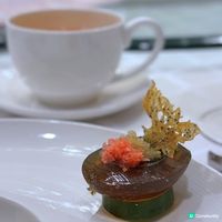 腐乳、蝦醬、蝦乾、點心、奶茶, 一系列充滿香港本土文化氣息的食材, 同樣也被列入非物質文化遺產, 帝港酒店集團區域中式廚藝總監江肇祺師傅與帝逸酒店中餐行政總廚李家鋌師傅合力設計「非遺雅宴‧傳味承真(九道)菜單」, 每道食菜都盛載著相應的製作技藝, 讓我們的味蕾來一趟文化深度遊. 滷醃三品, 吃有次序. 先來墨魚, 其次是皮蛋, 最後是海參. 椒韻墨玉 - 潮式藤椒墨魚 吃潮洲菜, 好喜歡吃墨魚片, 這道以傳統潮式滷水滷煮墨魚, 再加微辛辣藤椒汁, 好配搭, 而墨魚又爽嫩, 好好的前菜. 琥珀藏薑 - 子薑尖椒皮蛋. 單單半個皮蛋擺盤精緻, 粉橙色的子薑蓉以秘製醋汁醃漬, 碰上微辣的尖椒碎, 鹹鹹酸酸, 好特別~ 醬香珍味 - 蝦醬蔥燒刺參. 菜式混入蝦醬, 評價可以好兩極, 以蝦醬的咸鮮配海鮮, 海參嫩滑, 非常可口~ 煙燻二品, 一籠兩件~ 分別是籠香玉餃–蒸鴨肉餃子、金縷蜜焰–米通腐乳叉燒. 這個帶著非遺蒸籠及豆品製作技藝. 打開黑圓球, 煙燻效果就像點心在蒸籠般. 以蒸籠把餃子蒸煮, 皮薄餡多. 而叉燒與米通之間有腐乳醬, 意想不到的配搭帶出驚喜, 味道很夾. 翠膽明珠 - 砂鍋菜膽花膠廣東雲吞. 一口大小的「金魚尾」雲吞以豬肉拌蝦而製, 好彈牙! 這並非一般的雲吞雞, 而是以鮮雞、豬骨等熬煮的清澈濃湯, 再加入厚肉花膠, 滋陰養顏. 娃娃菜吸了濃湯, 更顯鮮甜~ 漁港風華 - 避風塘鹹魚茸豆豉煎馬友魚. 超讚嘆大廚以大量蒜蓉、豆酥、麵包糠豆豉、辣椒及瑤柱做出帶有避風塘風味的調料, 甜甜辣辣, 淨吃也好惹味! 肥美的馬友魚加入咸魚蓉及調料猛火兜炒, 香氣撲鼻! 陳滷菌珍 - 陳皮滷水牛肝菌農場雞. 雞件嫩滑, 配以薄切牛肝菇菌、百合、蓮耳、木耳, 少少香氣點綴是陳皮絲, 是平和之中帶點特色. 漁澳風光 - 大澳蝦乾魚肚杞子菜心苗. 好大隻蝦乾而且咬下咸香, 南瓜湯香甜、爽脆蔬菜、竹笙又吸盡湯汁, 吃過剛才的菜式再吃這道, 味蕾有跳入風光明媚的漁村之中. 金炊玉饌 - 脆芋絲臘味蟹肉炒飯. 賣相是有小草地的意境, 幾有創意~ 以火㷫住、鍋內滋滋發響, 所有食材拌勻來吃, 香脆咸香, 好好味~ 說到非遺, 港式奶茶必定榜上有名. 茶啡雙凝是港式鴛鴦茶凍, 一層一層可單獨吃或者三層一起吃, 幾香滑~ 傳統小點 - 麻雀千層馬拉糕、懷舊合桃酥. 「打麻雀」即打牌, 似乎是風假及節慶常備項目~ 這個非遺文化與人類息息相關, 馬拉糕以麻雀造型登場, 立即加分! 這款馬拉糕並非平常酒樓吃到的, 而且夾著奶皇椰絲, 較傳統舊式, 甜度適中~ 而合桃酥好香脆. 為好友慶祝生日, 這個開心果桑莓蛋糕好好味, 甜度適中, 慕絲夠滑. Happy birthday to 車媽媽、Suyi. 「非遺雅宴‧傳味承真(九道)菜單」原價每位HK$798, 優惠價HK$638. 逸軒 地址: 沙田源康街1號 石門帝逸酒店2樓 歡迎與我聯絡: jannis_tang174@hotmail.com facebook fanpage: Jannis Tang Through the looking glass IG: jannistang #沙田中菜 #帝逸酒店 #非遺文化 #shatin chinese cuisine #非遺飲食 #intangible cultural heritage #alva hotel (此文章由U Blog 同步發佈至社群)