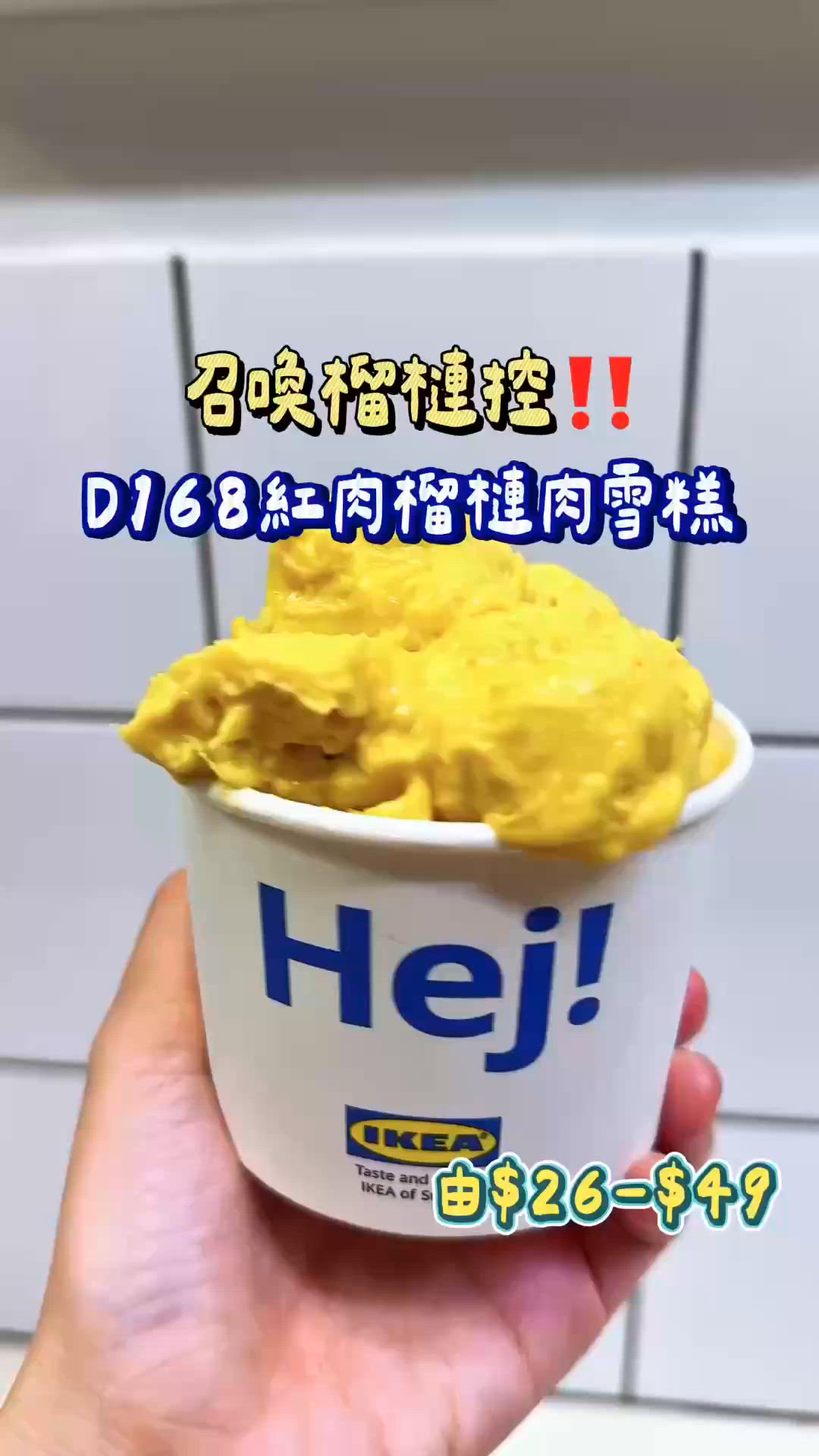 IKEA榴槤美食|IKEA榴槤新地|IKEA榴槤雪糕|繼D168榴槤系列美食強勢回歸後,IKEA再度加碼,推出「夏日榴槤美食第二彈」——全新榴槤牛奶新地配D175紅蝦榴槤肉快閃登場!D175紅蝦榴槤肉肉質綿滑,甜中帶甘,更帶有陣陣奶油香。全新新地的價格比往年再創低價,還可以選擇升級至榴槤肉3份或5份的配搭。由即日起登陸香港各分店瑞典美食站,數量有限,售完即止,各位榴槤控不要錯過啦~