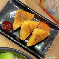 外皮烤至金黃酥脆、香氣四溢,咬開後內裡滿載香氣濃郁的韭菜、豬肉及雞肉餡,口感層次豐富。