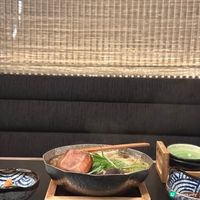 鵝肝控必試香燒鵝肝和牛釜飯,以魚沼越光米作釜飯,飽滿而有嚼勁的香米,吸收自家調配的蔬菜高湯及醬油。主菜為炙燒鵝肝及日本和牛,鵝肝香濃而不油膩,入口即溶、質感幼滑;日本和牛脂肪均勻,炙燒後油份滴入米粒之間,令釜飯更添肉香。