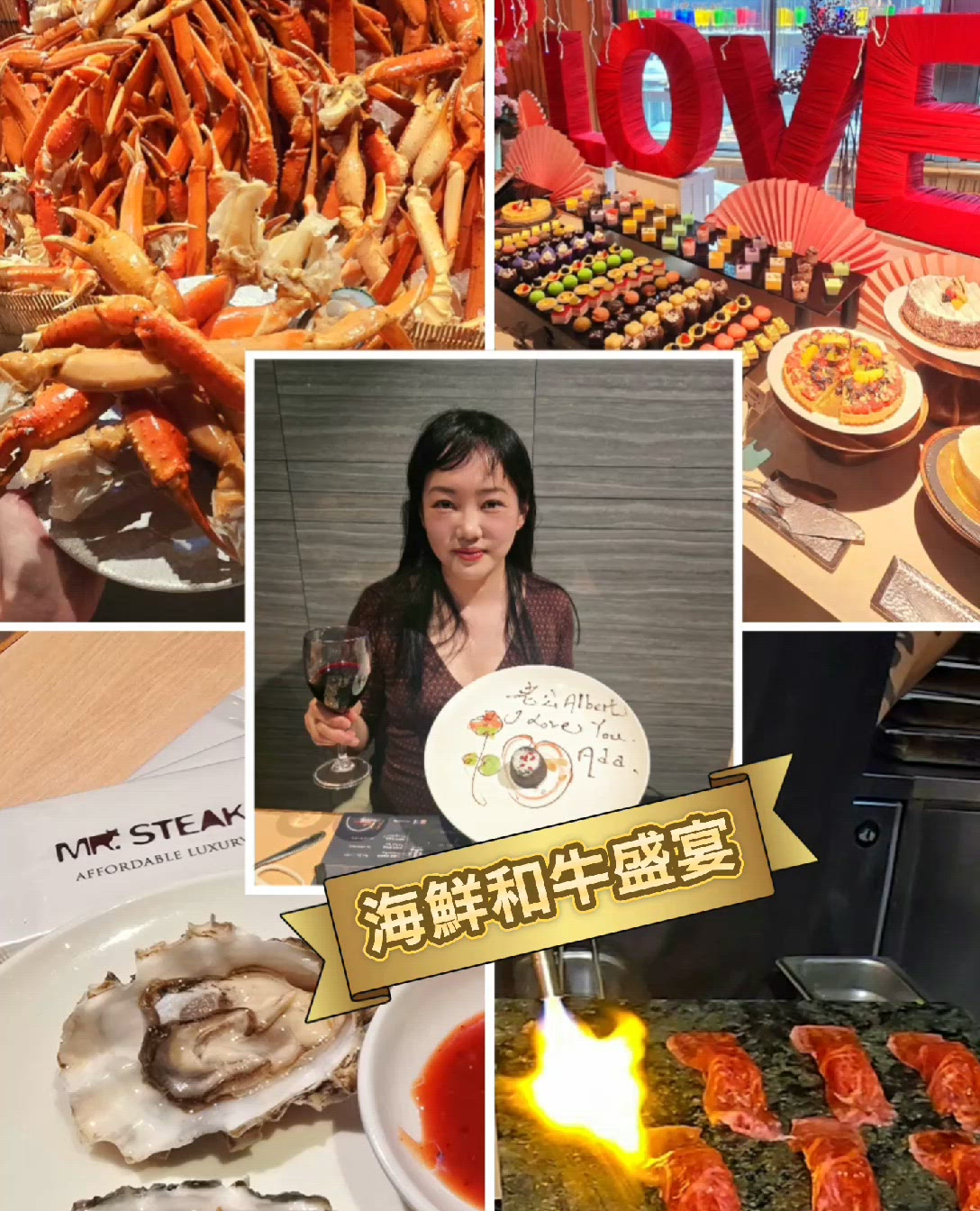 我與老公的海鮮和牛盛宴自助餐 . 在新年期間,當仔仔去露營時,我約了老公享受二人時光,前往 Mr. Steak a la minute 享用「日本和牛、雪花蟹腳、生蠔、龍蝦盛宴」的豐富自助晚餐。 . 晚市自助餐提供來自全球的美味佳餚,特別是日本和牛,搭配新鮮的冰鎮海鮮,包括生蠔、龍蝦和蟹腳等高級食材。和牛的烹調方式多樣,有鐵板和牛、日本和牛燒肉和火炙和牛壽司,還有新鮮刺身供應,甜品選擇也非常豐富,完全滿足了港人的口味! . 我特別推薦務必品嚐蟹腳。之前我在其他酒店吃過的蟹腳常常淡而無味,而這裡的蟹肉每一口都充滿濃郁的海鮮風味,讓人不由自主地想再吃一塊🙊。老公也開玩笑說我吃了整個家庭的蟹🦀🦀🦀🦀。 . 此外,即叫即開的生蠔也是必吃之選。生蠔味道鮮美,帶有淡淡的海洋鹹味,肉質非常滑嫩。一開始還需要排隊,等到尾聲時就不用再排隊了🙊🙊。 必吃和牛推薦: 🐮火炙左賀和牛壽司:每一件壽司都即叫即燒,真正實現入口即化的肥美油潤效果,和牛趁熱吃最美味! 🐮鐵板佐賀牛:薄切的牛肉片來自九州佐賀縣,油花如大理石般細膩,肉質鮮甜嫩滑!無論多飽也總想再來幾片! 香煎鵝肝多士配陳年黑醋醬:由廚師現炒的鵝肝,配上酸甜的黑醋醬,特別美味可口! --- Mr. Steak a la minute 地址:香港銅鑼灣告士打道280號世貿中心6樓 電話:2881 5757 . 用餐時間: - 自助晚餐(兩個時段):星期一至日 17:00-19:00,19:30-22:00 *特殊日子除外,詳情請參閱網上價目表。 --- @mrsteakbuffethk #MrSteakalaminute #自助餐 #西餐 #香港探店 #銅鑼灣美食