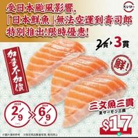 🍣壽司郎4月快閃優惠🔥$17三件超肥美三文魚壽司💜