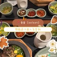 Solsot主打多款特式釜飯,包括牛排釜飯、鮑魚釜飯、鰻魚釜飯及鯛魚釜飯等等,以新鮮食材搭配焦香米飯,款款都超級足料!建議先將米飯及配料攪拌均勻,再將拌飯放入去碗中食用,之後把熱湯倒入釜飯鍋之中,蓋上木蓋焗一焗即可品嚐完美鍋巴湯。